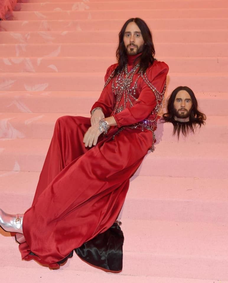 Jared Leto is never boring, that’s for sure. But this head-to-toe red Gucci ensemble, complete with a dramatic cape and a tiny, matching purse, was a lot to process. He looked like a glamorous vampire attending a very fancy opera. While we appreciate the commitment to the bit, it’s a look that definitely belongs in a very specific, very dramatic category of its own.